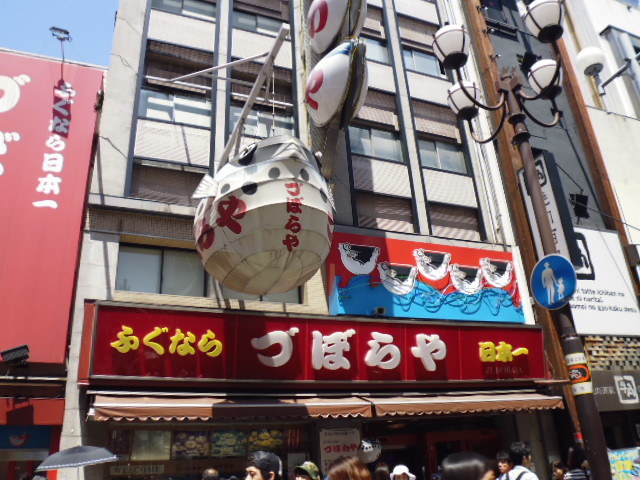 大阪では大きなふぐの看板で有名なふぐの専門店です。東京あたりでは高級なふぐも関西ではこの店を筆頭に大衆価格です。