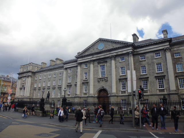 ダブリン観光の入口という位置にあるのがここトリニティ・カレッジです。正門そばにはアイルランド銀行も鎮座していて、大きなビル群が目立ちます。