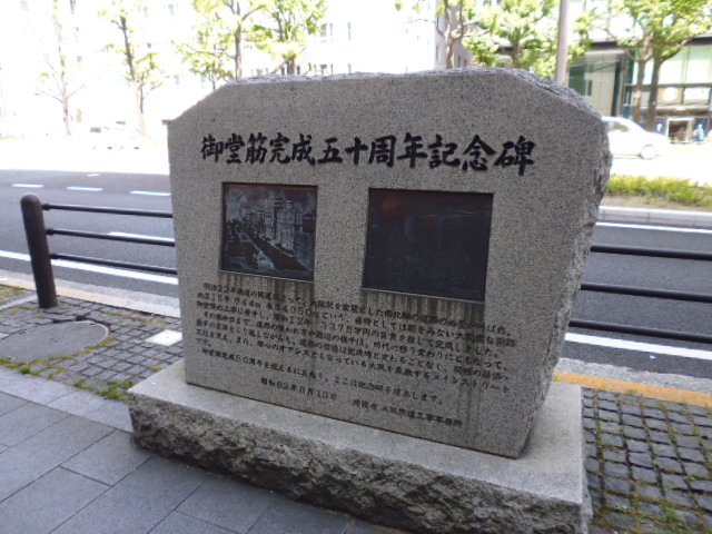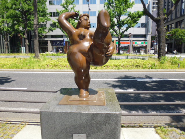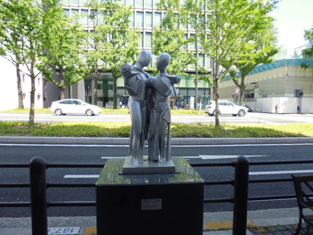大阪を南北に貫くメインの通りで、きれいにいろいろな彫刻が道路沿いに並んでいます。