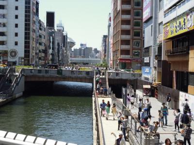 大阪ミナミの中心であるこの辺りは橋が多いところで、この道頓堀橋や戎橋がすぐ横にはあります。