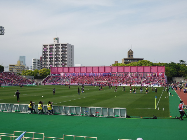長居公園内にある小さいほうのスタジアムで、1万5千人くらいの収容人数でサッカー専用なので見やすくていいですよ。