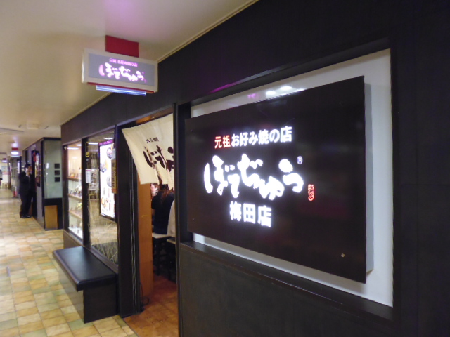 大阪・梅田の阪急電車地下にある三番街にある、お好み焼きや焼きそばのうまい定番の店です。