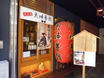 多くの人に知られた夫婦善哉の店が法善寺にあります。法善寺のすぐわきにあって多くの人で回りはにぎわっています。