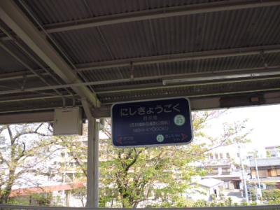 阪急電車の駅で、駅からはすぐに西京極の競技場に向かうことができます。競技場のエリアは広く、多くの人がランニングをしている姿が電車からも見えます。