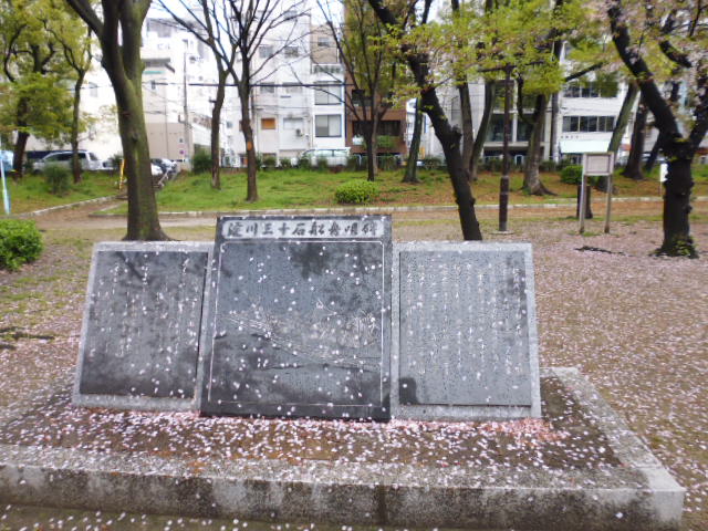 天満橋駅から淀川を渡ると南天満公園があり、今は桜の花見の時期で多くの人が散策しています。南天満公園内にあるのがこの句碑です。