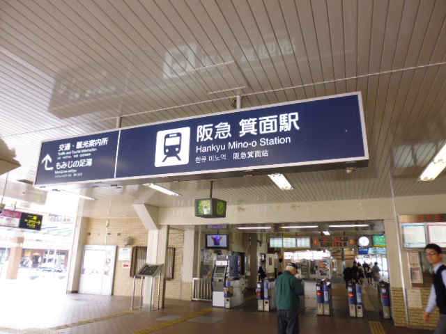 大阪・梅田から阪急電車で箕面までは石橋駅で乗り換えてすぐです。箕面駅からはすぐに山になりそこから先が温泉街になります。