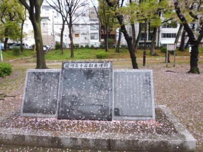 碑はこの桜の時期には桜の花びらでおおわれていました。