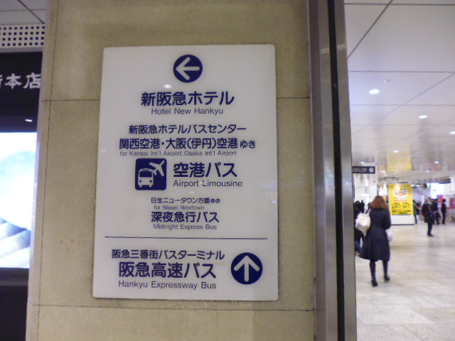 JR高速バスはJR大阪駅からでているのだけれども、私鉄である阪急電車の長距離バスは阪急電車方面の地上階から出ています。