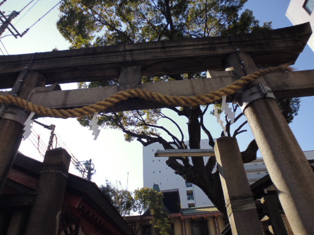 大阪駅から地下鉄ひとつ、歩いても30分くらいのところ中津にある神社がここです。すぐ道路を隔てた隣には有名なカンテ・グランデというチャイで有名な喫茶店もあります。