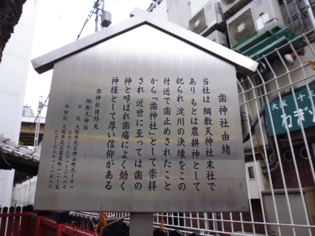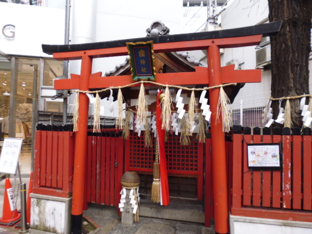大阪・梅田の阪急方面にあるESTというファッションビルの一番端方面にあるのがここ歯神社です。小さな神社なので見すごしてしまいそうなところでもあります。