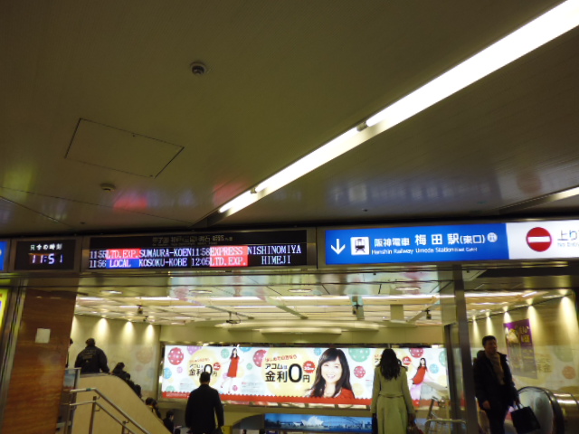 阪急梅田駅はJRから少し歩くけれどもここから神戸、宝塚、京都に電車が出ています。- 旅行時期