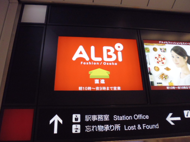 ALBI(アルビ)と書かれた看板がJR大阪駅辺りにはそこここにありALBIを宣伝しています。ショッピング街はJR大阪駅に隣接していてほぼJRのガード下という立地です。