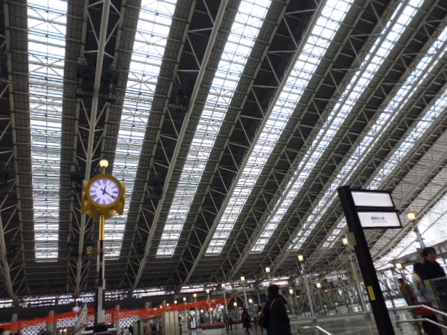JR大阪駅からすぐの広場がここアトリウム広場です。大阪駅を上から眺めることもできる絶好の場所です。何本もの電車が通り過ぎ鉄道オタクにはいいかもね・・・