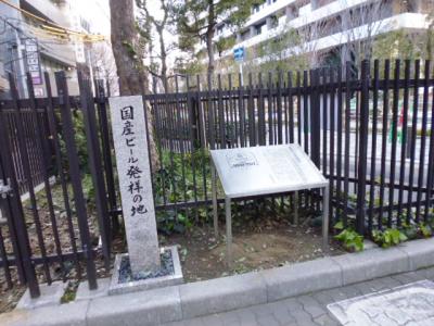 大阪・梅田の飲み屋街である北新地の少しはずれにひっそりとあるのがここ国産ビール発祥の地の碑です。