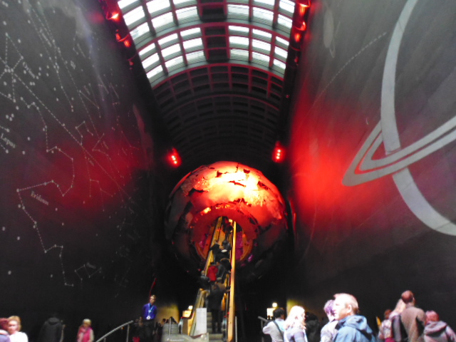 恐竜などで有名な自然史博物館の隣にある科学博物館は入口から上へのアプローチのエスカレーターが科学をイメージさせてくれます。