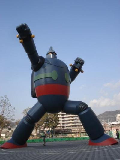 神戸の繁華街とは違う雰囲気の長田の町の復興用に建てられた鉄人28号はJRの電車の車窓からも見ることができる大きさです。