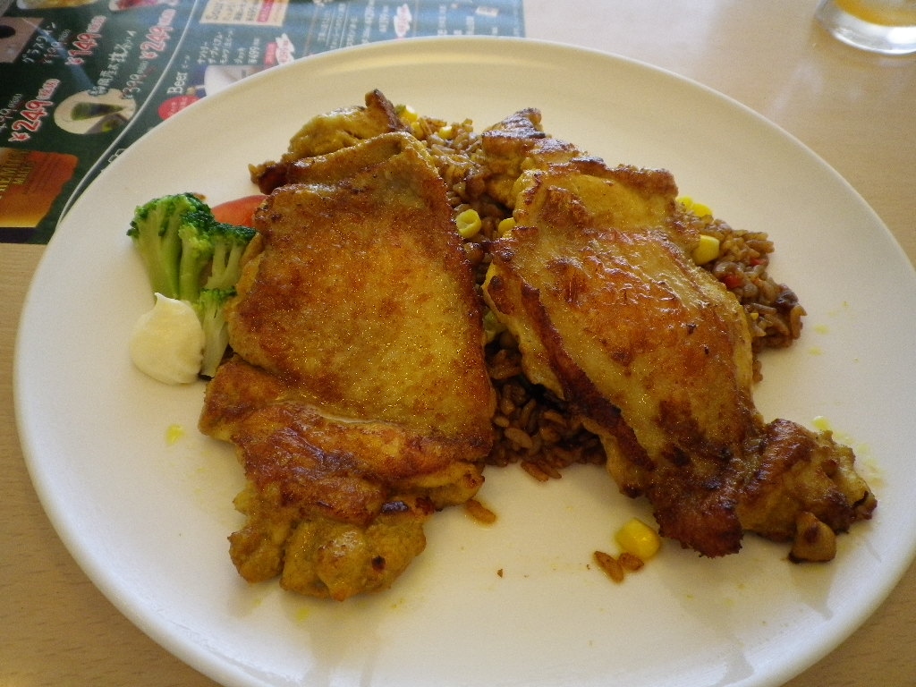 おなじみのファミレスなので、ここの名物であるチキンとカレーピラフのワンプレートをいただきます。