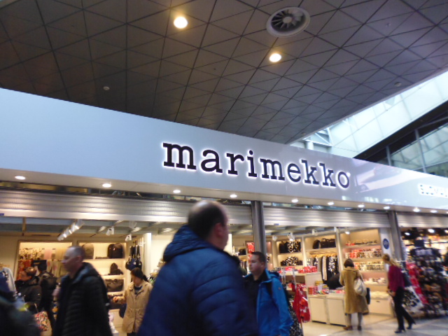 フィンランドのヘルシンキの空港内のマリメッコのお店です。ヘルシンキ市内にも店があるのでそちらのほうが品ぞろえもいいですが、何か買い忘れた人や乗り換えでフィンランドを味わいたい方にはいい店です。