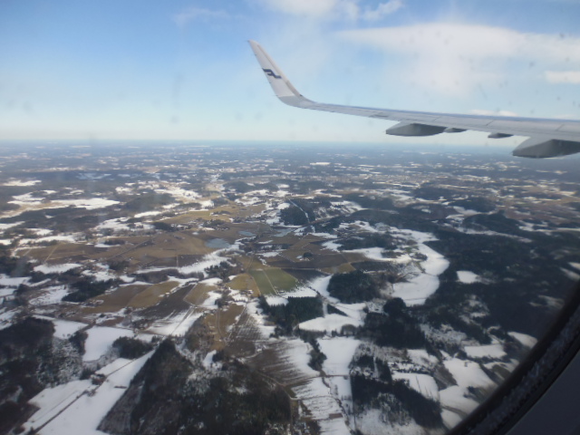 スペインに行ったあと経由地でヘルシンキに到着です。飛行機から見たフィンランドはスペインの太陽の下とは大違いの景色で、雪がやっと溶けてきているような状態です。