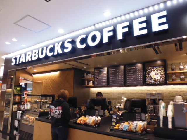 最近はこういうSA内でみかけるようになったスターバックスコーヒーの海老名の店です。きれいなトイレや大きなスペースのSAの中ではあまり大きくはありません。