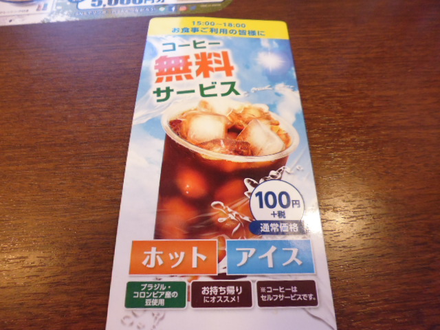 夕方早い時間だとコーヒーが無料ということで、アイスコーヒーもいただきました。- 旅行時期