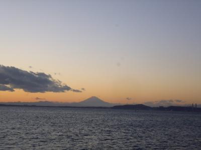千葉の浜金谷から40分の船旅で久里浜までの旅程です。この日は夕方の明かりの中、富士山がきれいに見えます。