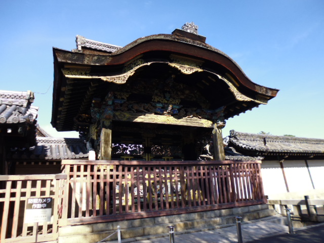 西本願寺から塀沿いを龍谷大学の方向に行くとあるのがこの唐門です。見事な彫刻と色で何回行っても素晴らしさが見えます。