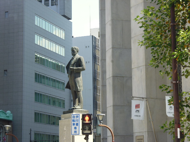 大阪北浜のビル地下にある日本料理屋さんに行った帰りにここを訪問です。大阪のかつての中心である大阪証券取引所の前にある五代友厚さんの銅像です。