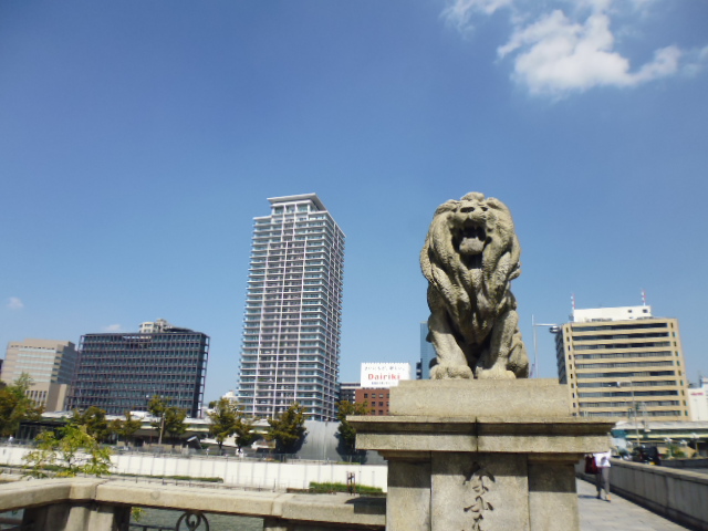 まるで三越百貨店の玄関のようなライオンが橋に鎮座しています。見事なライオンを見ながら橋を渡ると中之島エリアです。- 旅行時期