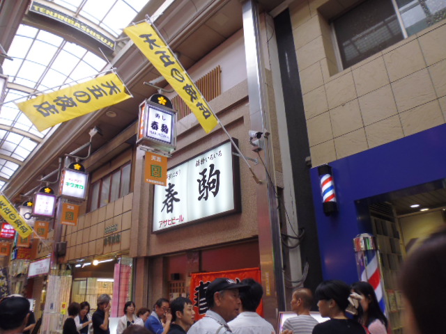 日本一長い天神橋筋商店街の真ん中あたり、JR天満駅から少し北に行った商店街に一番の行列というありさまの寿司屋です。