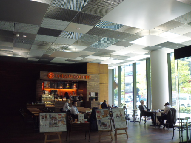 このフロアの端にそこそこのスペースでカフェがあり、そこがこのカフェです。外を歩く人を眺めながらゆっくりコーヒーを味わえます。