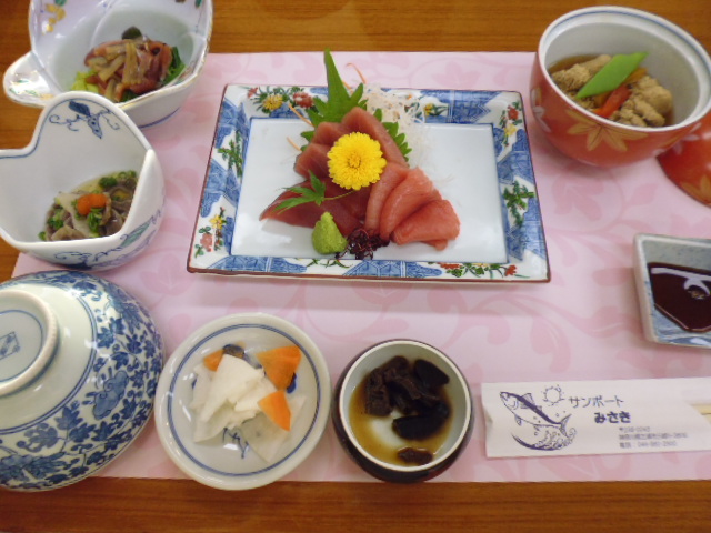 三崎の港からすぐにある船員組合の宿だったところが一般でも泊まれるようになっています。入口で浴衣を選んで部屋に行きます。食事は三浦らしくマグロ三昧で、内臓などいろいろ珍しいものがいただけます。