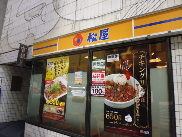 大阪の肥後橋にある松屋さんがここです。回りにはビジネスホテルや大きなビルがおおいところですがここの松屋はどこにでもある松屋で庶民的です。