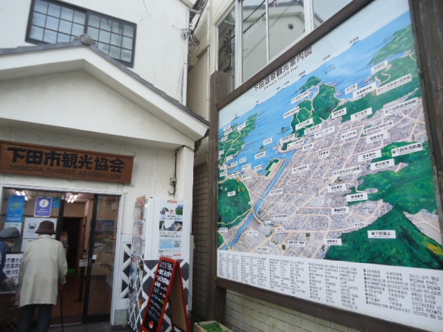 伊豆急下田の駅から少し歩くと白のなまこ壁の案内所がでてきます。大きな伊豆下田市内の地図があるのですぐに分かります。ここを起点にして市内散策が便利で簡単です。