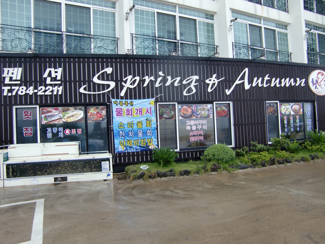城山日出峰近く、「Spring & Autumn」と言う大きな英語の看板が目印。