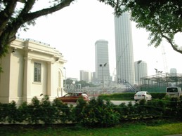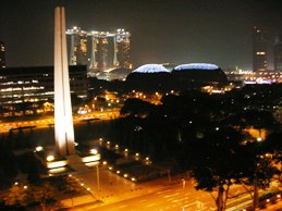 2回朝食をとる機会がありましたが、プールサイドのブッフェスタイルの朝食の方が開放感があり、天気も良かったのでお勧めです。部屋はグレードにもよると思いますが、日本からインターネットで旅行業者経由で安価なものを選んだ割には、部屋もきれいで広さも思っていたより広く快適でした。ただ、このホテルの円筒形の形からすると、部屋によって景観に期待できないところもあるかも知れません。私の滞在した部屋は海側で、毎年F1が走る道路やマーライオン、建築中の「マリーナベイサンズ」が見え夜景もきれいでした。コンベンションか何かこのホテルで開催されていたようで、ロビーが駅前の雑踏のようでしたが、満足できるサービスと清掃の行き届いたきれいなホテルでした。チェックアウト後も荷物を預け、夜出発の飛行機の時間まで、ホーカーやショッピングを楽しむことが出来ました。ホテルにとっては、このようなお客様が多いようで、荷物を預けると交換チケットを発行してくれました。日本語スタッフはいませんでしたが、何とかなります。- 旅行時期