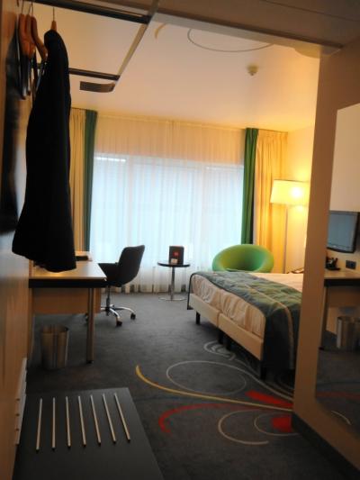 部屋にバスタブとミニバーとミネラルウォーターと冷蔵庫がない!! その割りに4つ星のためか課税率が高く、お得感はないです。が、立地が非常に良い。ブリュッセル中央駅からサンミッシェル大聖堂のとんがり屋根を目指してやや傾斜した坂道を歩き、5分ぐらいで着きます。メトロの入り口も至近。歩いて5分くらい(中央駅裏手)のところにGalerie Ravensteinがあり、カルフールエクスプレスが入っているので水など安く買えます。