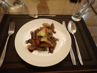 ブハラの旧市街の中にあり、夕食後に1時間程度観光したが、結構いろいろと見て回れて満足。肉料理(ビーフ)の夕食は美味しい。特に前菜のナスの炒め物が日本人に合う味で良かった。バスタブがある部屋とない部屋があった模様。私はバスタブがない方だった。旧市街にマッチした外観。若干施設が古い感じもあった。ツアー利用で費用不明。