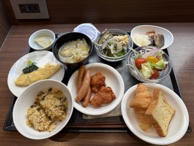 ビジネスホテルっぽい感じですが、和室もありました。大型温泉施設もあって快適。日帰り入浴の人もいて、夜はちょっと混雑。朝は快適でした。朝食バイキングは普通な感じですが、焼きたてクロワッサンが美味しかったので満足。郷土の食材(いぶりがっこなど)も豊富でした。