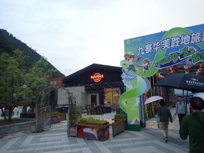 九塞溝に行く前に宿泊。入口まで近いので余裕を持って出発できるのは良い。食事はたまたま「海鮮バイキング」の日だった。なぜ山の中で海鮮かは不明。日本人にしてみると、回転ずしよりも下のレベルでとても満足はできない。海鮮以外の普通の四川料理はちゃんと美味しいので、結局それを食べていた。リゾートらしく夜も近隣の店が営業しており、ハードロックカフェもあった。毎日午後8時から、焚火を囲んで踊るイベントがある。中国人は喜んで踊っていた。日本人も好きな人は楽しめると思う。部屋のミニバーは無料だが、ソフトドリンクしかないのでイマイチ。レストランでも追加料金なしでビールは飲めるが、あんまりうまくはない。ヒルトンと言われてもまあ、こんなもんかという感じ。全般的に平均点以上ではあるけれども、目玉はない。ツアー利用で価格不明。