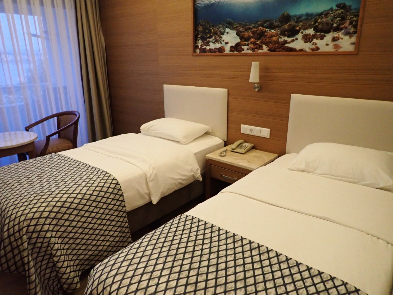 ツアーで利用したので費用は分かりません。食事はうまくもまずくもない感じでした。夏はお手軽なリゾートホテルという感じでしょうか。冬なので泊まるだけのホテルです。施設は古いですが、特に不便は感じませんでした。ただ、エレベーターだけはメチャメチャ遅くて、3階だったのですべて階段を使いました。