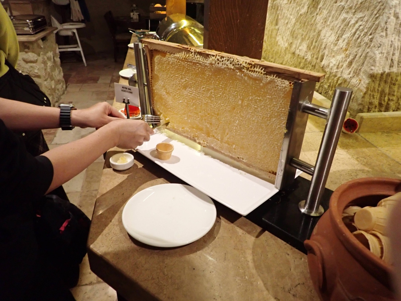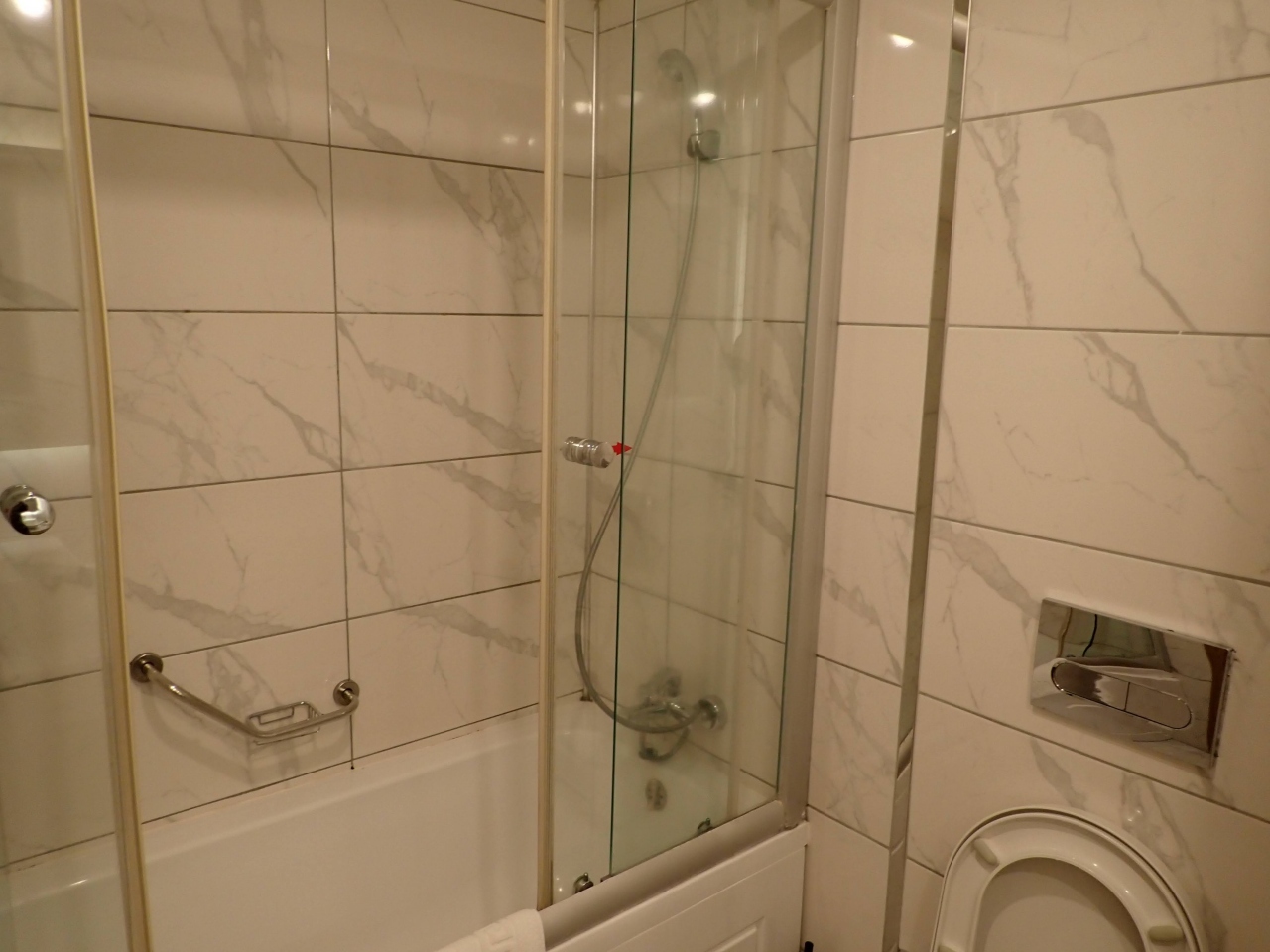 イスタンブールで3番目に良いホテルらしいです。1位と2位は不明ですが、コンラッドとヒルトン?でしょうか(^_^;)ツアー利用で正確な費用は不明です。部屋からはぎりぎりボスポラス海峡が見えました。ブッフェ形式の朝食は美味しいですが、品数としてはそんなに多くありませんでした。オムレツを焼いてくれる人はいました(^o^)部屋は広々と快適。バスルームも十分な広さでした。玄関で毎回、金属探知機の検査があるのが面倒くさかったですね。基本的には文句なし五つ星ホテルなのですが、ホテルマンは感心するほどの応対でもありませんでした。日本のツアーがどの会社もトルコ最終泊に使っているのは、何かカラクリがある?と思っています(^o^)