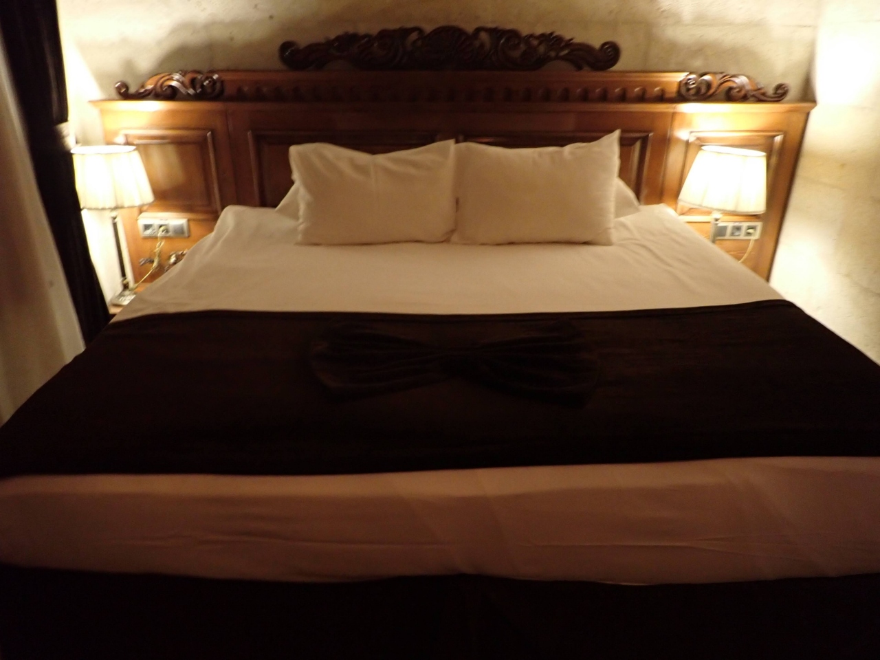 ツアー利用で正確な費用は不明です。田舎の五つ星ホテルという感じで、メチャメチャ高級ではありませんが快適でした。洞窟を一部加工して部屋にしてあります。自然の形をそのまま利用しているからか、構造が非常に複雑で、何度も道に迷いました。初日にスーツケースを運んでくれたホテルの人も間違えて別の人のケースを運んできました。2連泊しましたが、フロントから部屋に行く道が毎回変わりました(^_^;)部屋の形も全部違うようです。私の部屋のバスタブは正方形でちょっと足が伸ばせず使いづらかったですが、中には三角形のバスタブの人もいたようです。食事は美味しかったです。オムレツを焼いてくれる人もいました。個人的にはかなり気に入りました。