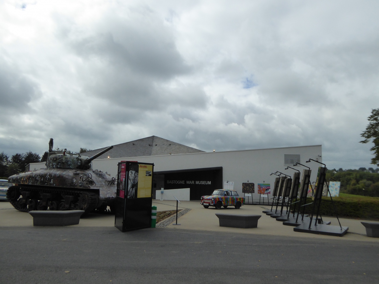 バルジの戦いを中心に第2次世界大戦全般(欧州のみ)が展示されています。写真や映像はまあまあ豊富で見どころも多いですが、兵器の実物はそれほどありません。戦車はシャーマンとヘッツアーぐらい。バイクやジープが若干ありました。外にあるモニュメントに上ると、アルデンヌの地形が何となく分かって勉強になります。小学生の団体も来ていました。バストーニュはバルジの戦いで米101空挺師団が死守した街として有名です。この博物館はバストーニュの東の郊外にあります。