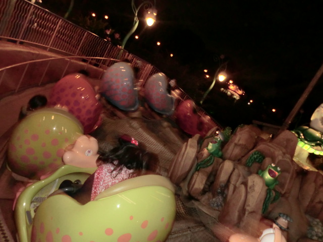6年前、3歳だった次女が一番気に入っていた乗り物です。さすがにもう喜ばないかと思ったら、やっぱり喜んで何度も乗っていました。夜に利用したので5分の待ち時間。降りるとすぐまた並んで4回ほど乗りました。私も乗らされて、上下運動でぞわんぞわんしました。