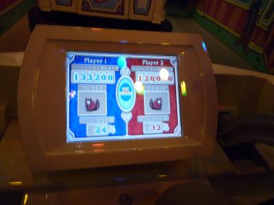2泊3日の旅行中計4回訪れました。我が家はハッピー15エントリーというアーリーエントリーを利用したので、一般開園と同時にFPを取得しました。その後、スタンバイでも乗車、最終日に利用したプレミアムツアー内でも1回だけの制限つきで利用しました。ガイドのお姉さんにコツを聞くと、「○○を連打すると、ポイントの高い○○が出てくる」とか・・・。私はよくわからなかったけど、一緒に乗って教えてもらった子供たちは「ほんとに○○がでてきた~」と大喜びでした。
