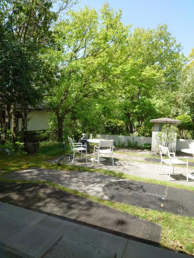 新緑の中庭を見ながらたべる