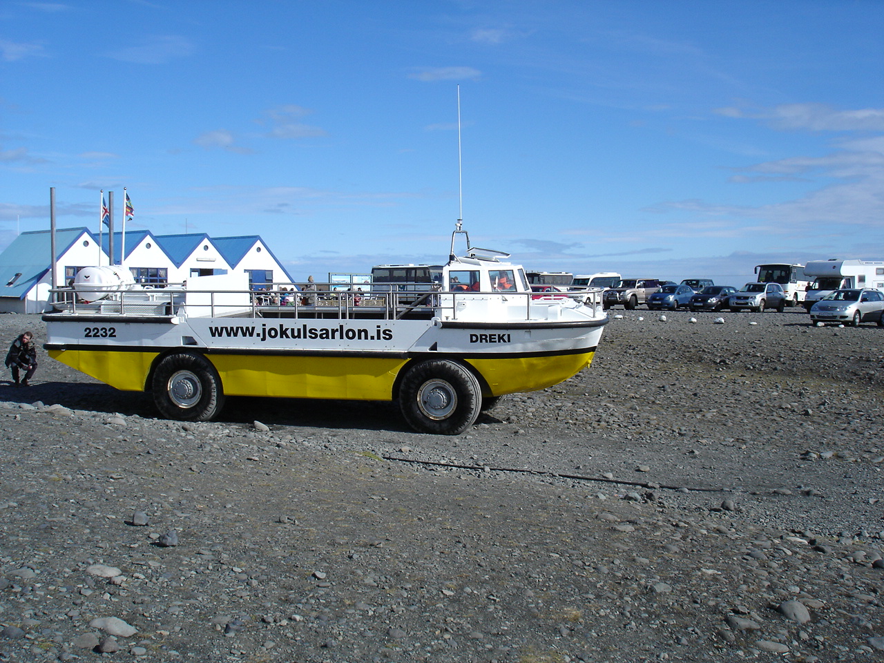 Iceland Excursionsのデイツアー、AH-35サウスコーストとヨークルサルン氷河湖に参加しました。日本で申し込んであったので、7:30ホテル前まで迎え、Iceland Excursionsのオフィスで他の参加者と合流し、20人乗りぐらいのマイクロバスで出発。国道1号線を東に向かってひたすら走ります。途中ランチタイムをはさみ、Selja lands foss(滝)をみてアイスランド最南端の町VIKの手前で一号線から海岸沿いの砂利道を延々と行きます。Dyrtholaeyという面白い岩が見える崖に出ます。崖っぷちにパフィンのコロニーがありじっくり観察できました。解説のパンフレットには全く書いていなかったので、ガイドが特別連れて行ってくれたようです。アイスランドの鳥は、人が危害を加えないのを知っているのか、近づいても全く逃げません。しっかり写真も撮れました。その後、最終目的地のヨークルサルン氷河湖に午後4時ごろ着きました。でもとても天気がよかったので暖かくまだまだ明るい。水陸両用ボートに乗り込み、氷河の先端が溶けてできた氷河湖を渡ります。ボート上では氷河のかけらを、味わい、カッコいいガイドのお姉さんの解説付きでした。その後VIKで夕食、行きに通り過ぎたもうひとつの滝Skogar fossで降りて、またひたすら国道1号線を西に向かってレイキャビクを目指します。夜10時ごろやっと太陽が沈み始めました。しかしすっかり沈み終わるまで1時間ぐらいかかり、沈んでからもいつまでも空が明るいのです。緯度が高い太陽の動きを実感できました。夏至の頃だとどうなっているのかな?ホテルに着いたのは夜中の12時ごろさすがに暗くなりました。帰りが予定より1時間30分遅かったけど、大満足の1日でした。