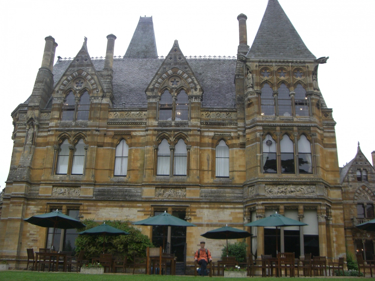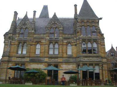 従業員たちは召使のように振る舞い、まさに貴族の館でした。室内にはマントルピースがあり家具調度も重厚、ドアノブやドアチェッカー、チェストなどの金属部分はすべて銀色に光っていました。正面玄関側の3階に宿泊しましたが、庭園には時々野生のリスや野うさぎが顔を出し、庭園の向こうにはたくさんの羊が放し飼いになっていました。