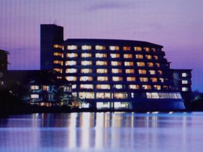 部屋からは、中央に定期的に吹き上げる噴水がある柴山潟が目の前に見えます。